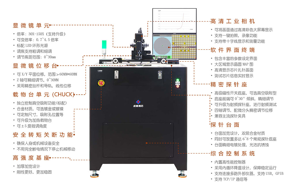 支持标准1、2、4、5、6、8英寸晶圆;或矩形区域内芯片测试; |